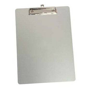 Tough, thick compressed aluminium clipboard. Virtually indestructible - will not bend or warp. Chrome-plated lever clip to hold your papers secure. Includes a retractable hanging clip. A4 size. Price each.
