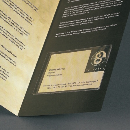 Let the customer know exactly who they should get in touch with! Easy to attach to any kind of presentation material and a convenient way of filing business cards for future reference. Can be mounted either vertically or horizontally.
