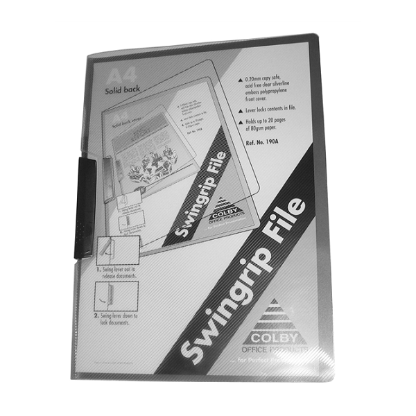 - Sturdy colour co-ordinated plastic swing clip secured to spine.