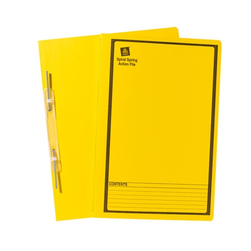 - Extra heavy duty file fitted with a spiral spring coil fastener and pressure plate.