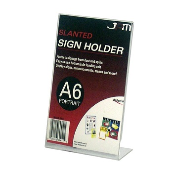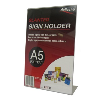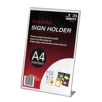 - Portrait style A4 Menu/Sign Holder slanted for good content visibility.