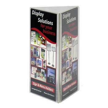 - Multi-sided Portrait style DL Menu/Sign Holder clearly displays several signs at the same time.