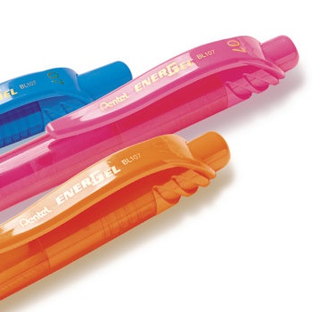 Fine 0.7 mm gel ink pen. Barrel colour denotes ink colour. Refillable.